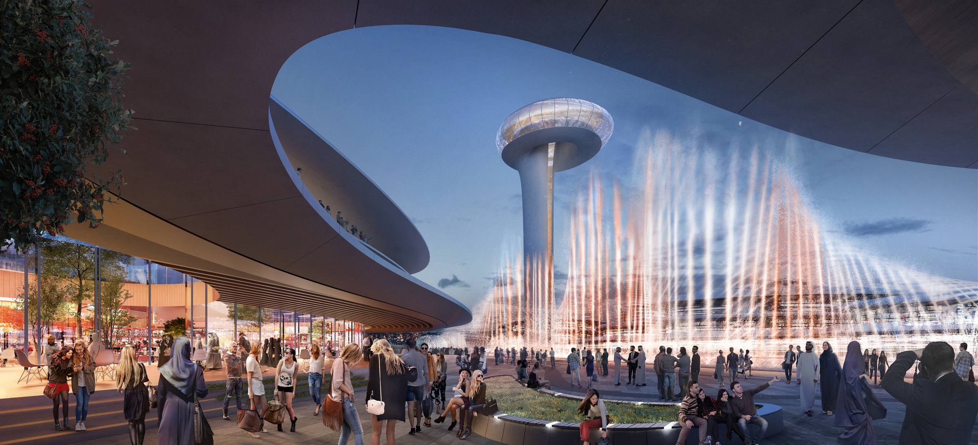 The complex’s natural ecosystem, irrigated by recovered and recycled water, is designed to sustain a microclimate at ground level for gardens featuring plant species native to the region, while the Central Hub’s lighting requirements will be entirely provided by smart solar power.