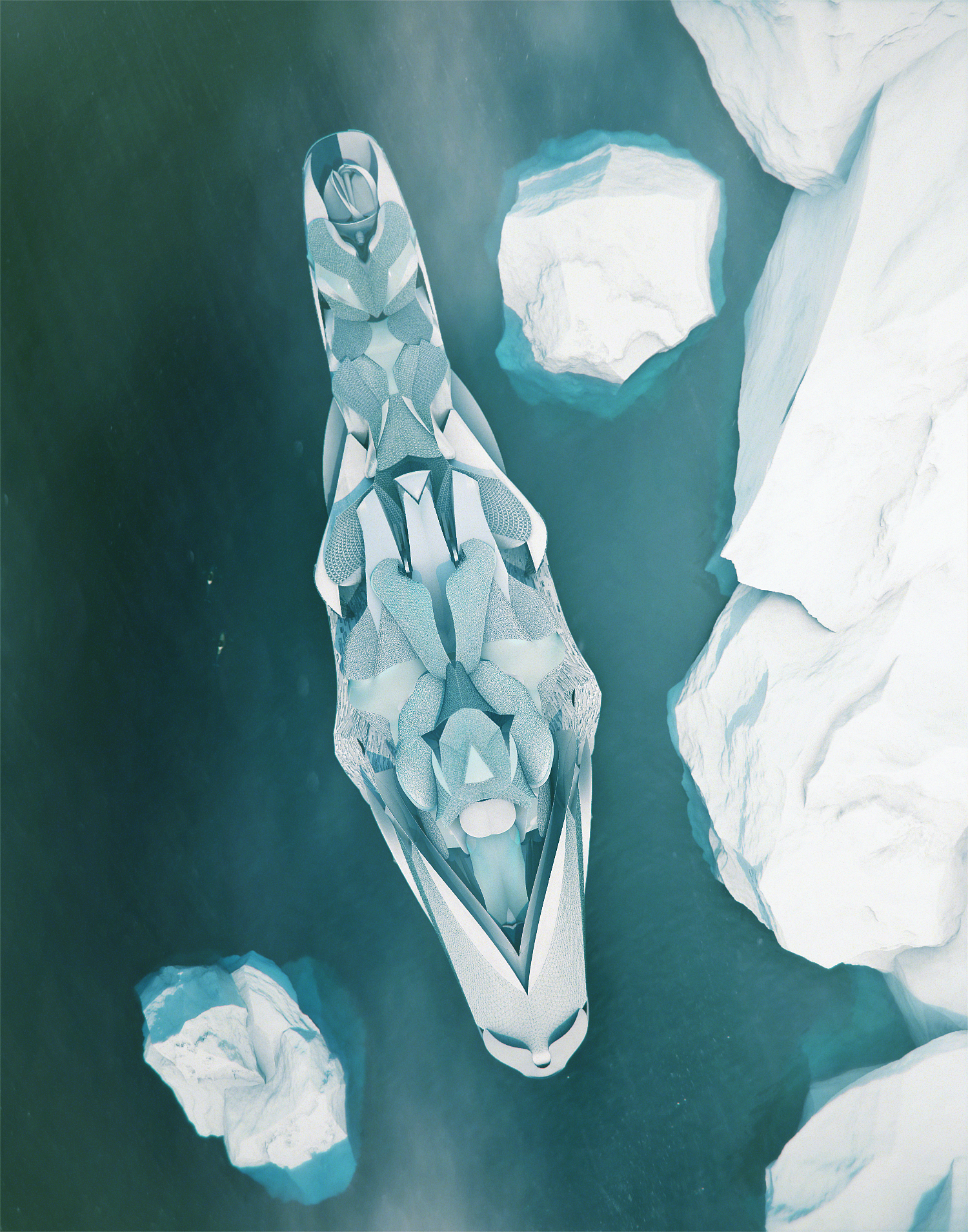 The connection between station is created thanks to robotic construction technologies those allow the boat form to bend and span to 300 meters heights. This new skyscraper is stabilized not just with underwater construction at the gathering locations but with the most natural force in Antarctica– the ice. The stations became connected and part of the landscape, frozen into the countryside.