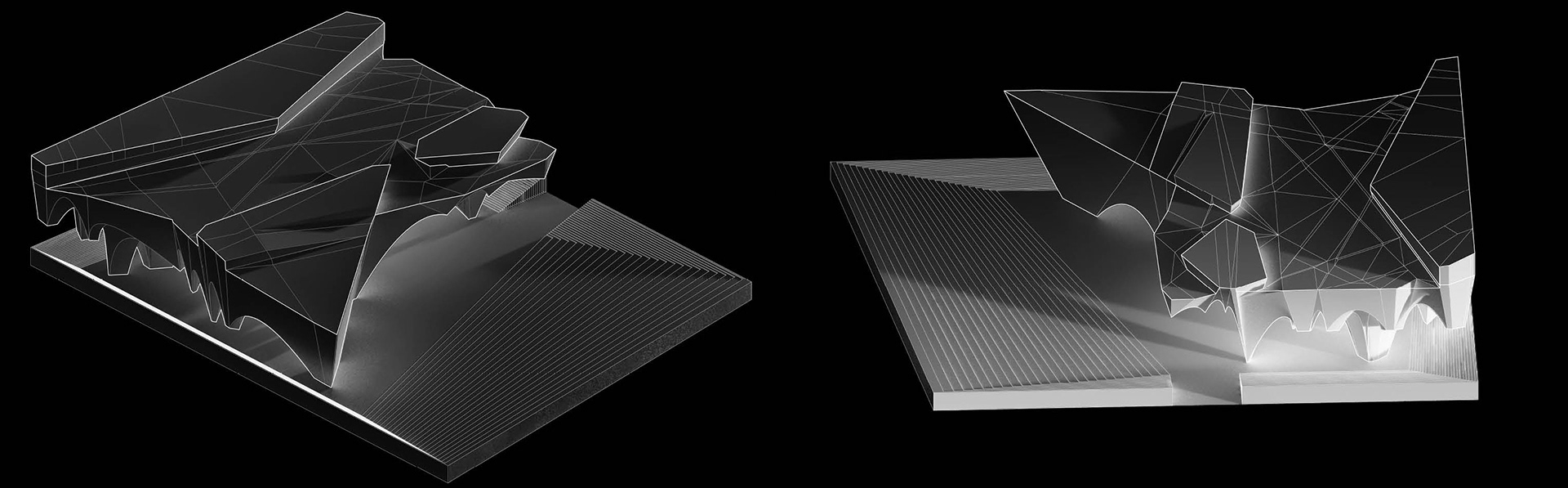 The structure engages with the public via its sculptural grace. The public is provided with glimpses of the interior programmatic in order to engender curiosity. If one enters the interior they are provided with views of the ever changing plaza below, natural sunlight from above, and performances that occur inside. The public is free to create their own performances, when and wherever they please.