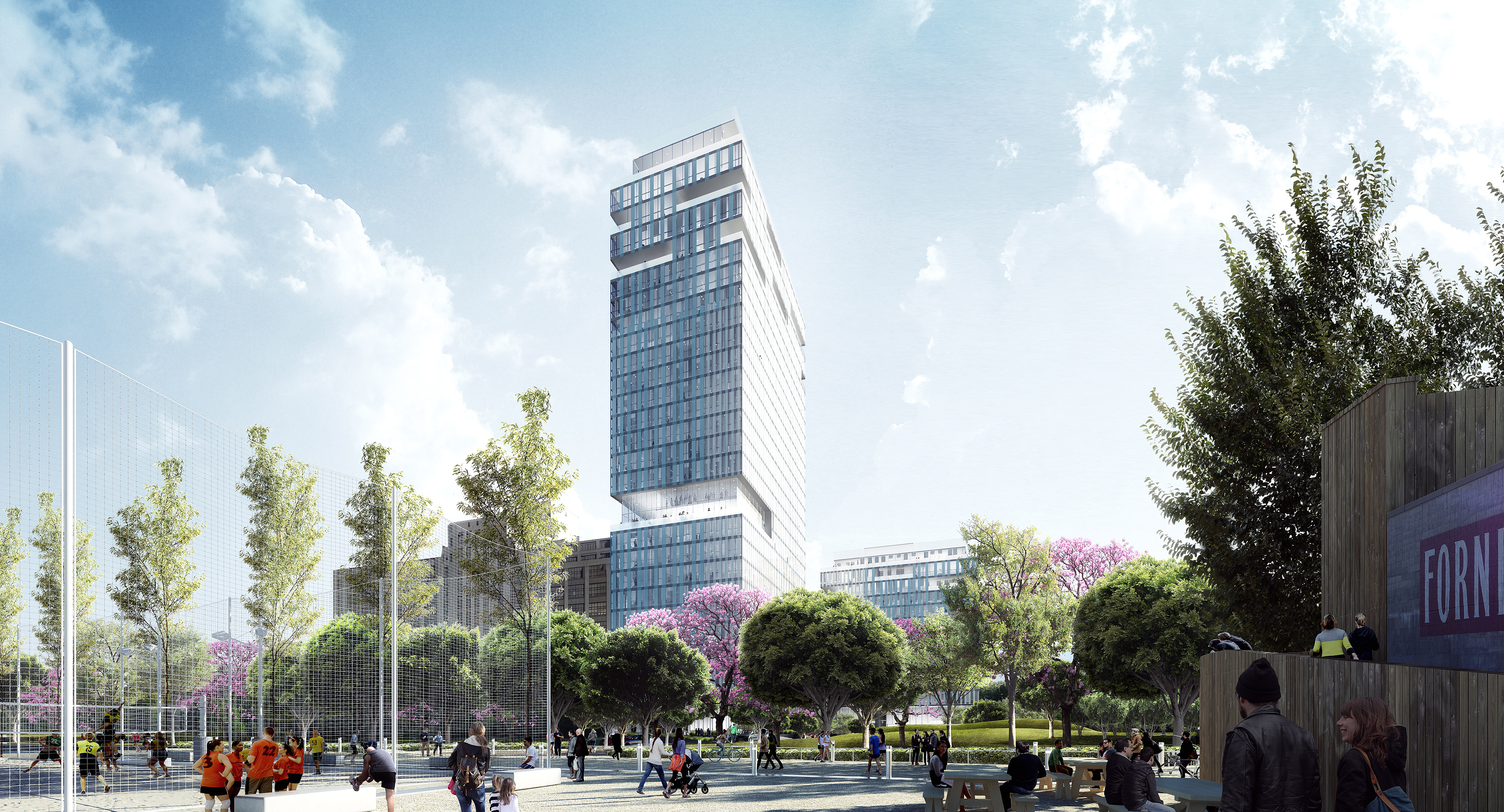 A dual strategy shaped the project’s distinctive identity and iconic presence within the park. First, the towers’ exterior expression is articulated through a carefully composed vertical choreography of colour and material variation. This layered façade, together with a reflective, painterly interplay of light and shadow, reinforces the buildings’ prominence on the skyline and lends the architecture a sense of stature and civic dignity. In this regard, the project is positioned not only against the Brooklyn skyline but also in deliberate dialogue with Manhattan across the East River.