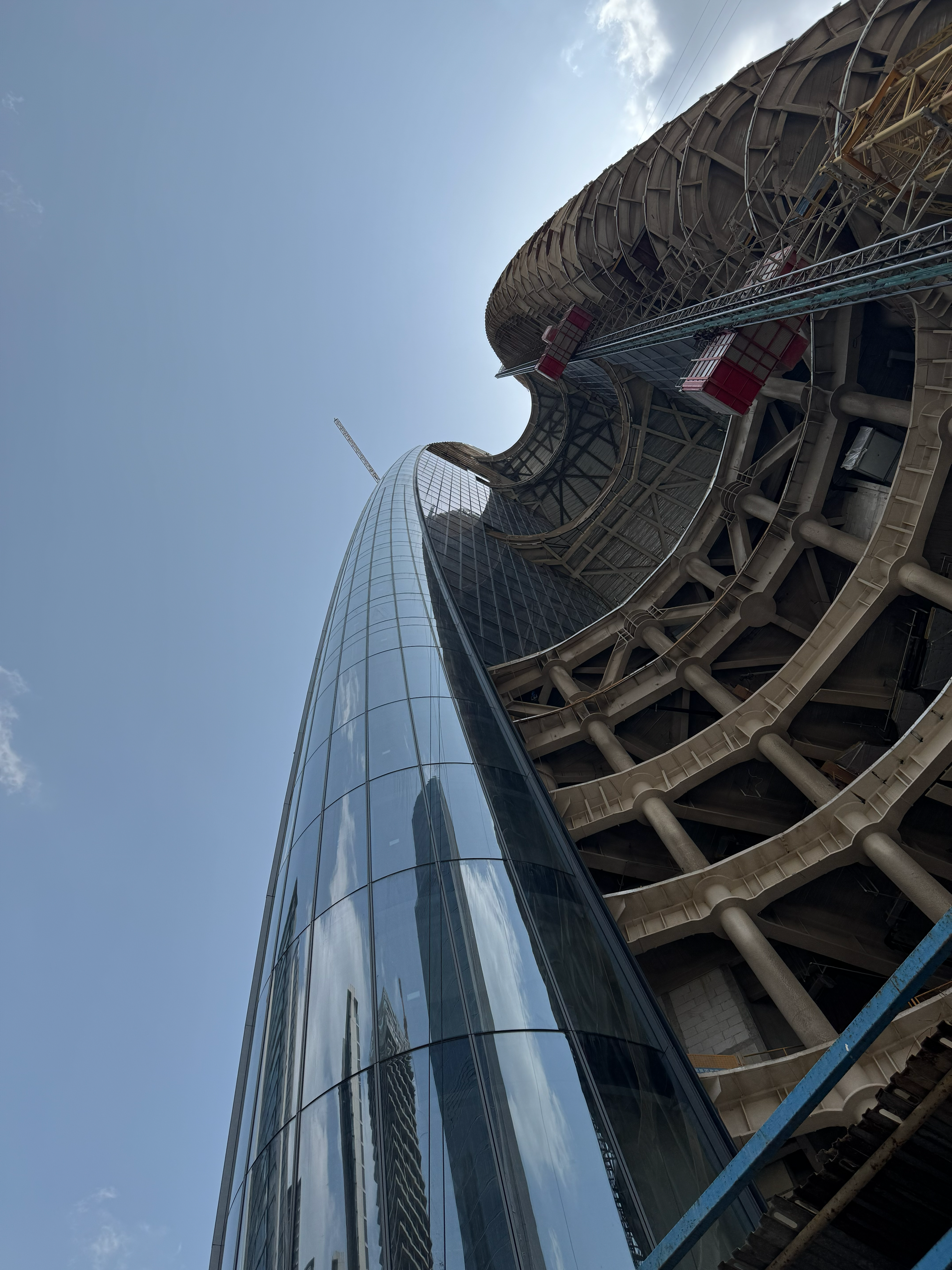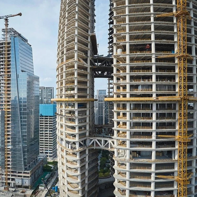 Each tower's entrance lobbies are accessible from the central courtyard, with floors above offering vistas of the Yangtze River or views into the central canyon. The centre combines apartments, offices, hotels, shopping, dining, cultural, and recreational facilities, accommodating over 20,000 people daily. It creates an integrated vertical community alongside the new Central Park and riverfront landscape.